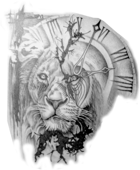 PikPng PNG Tattoos Png - Lion And Clock Tattoo Design Clipart