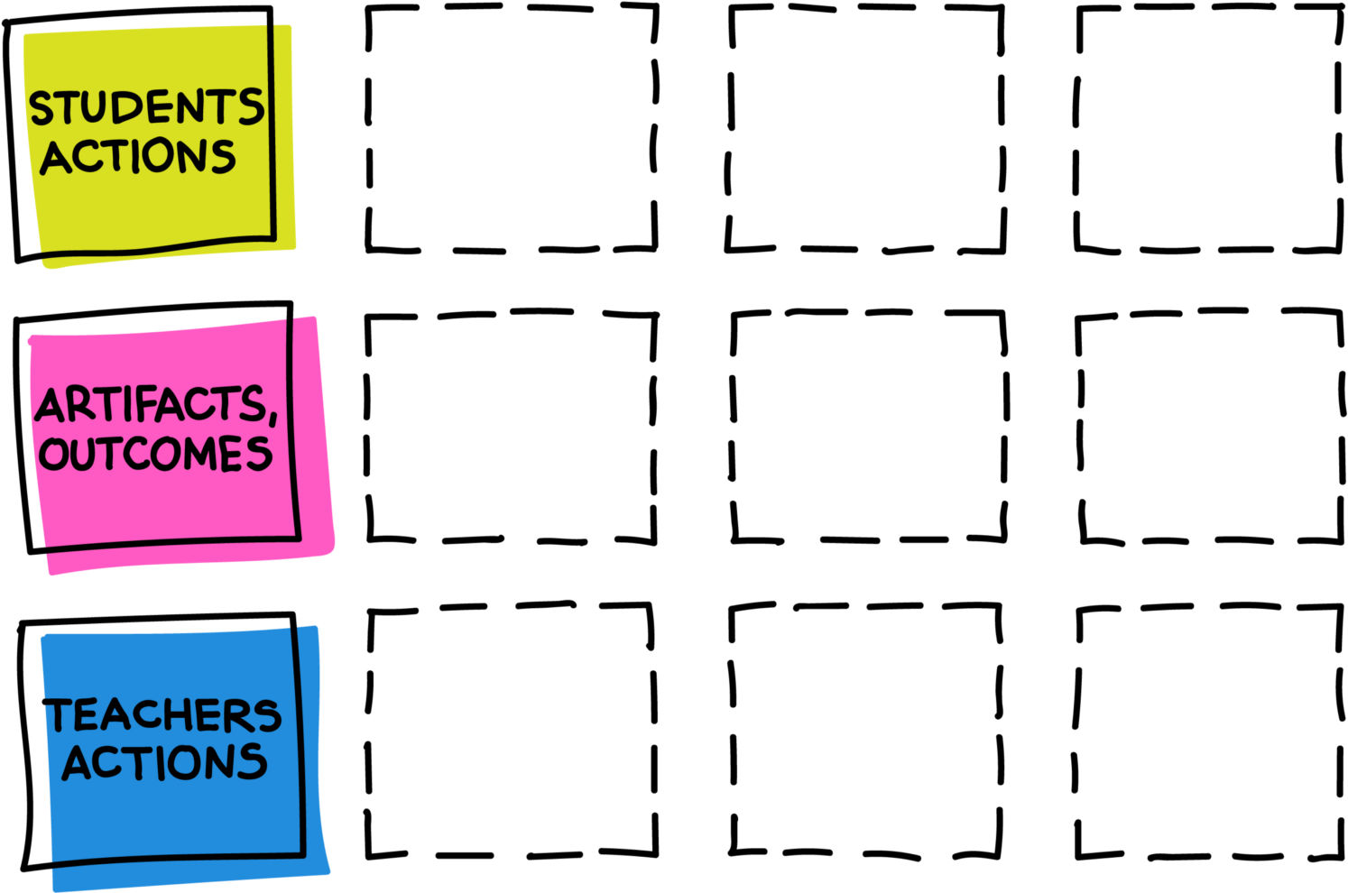 Rows Represent Students Actions, Artifacts, Outcomes - Ink Clipart