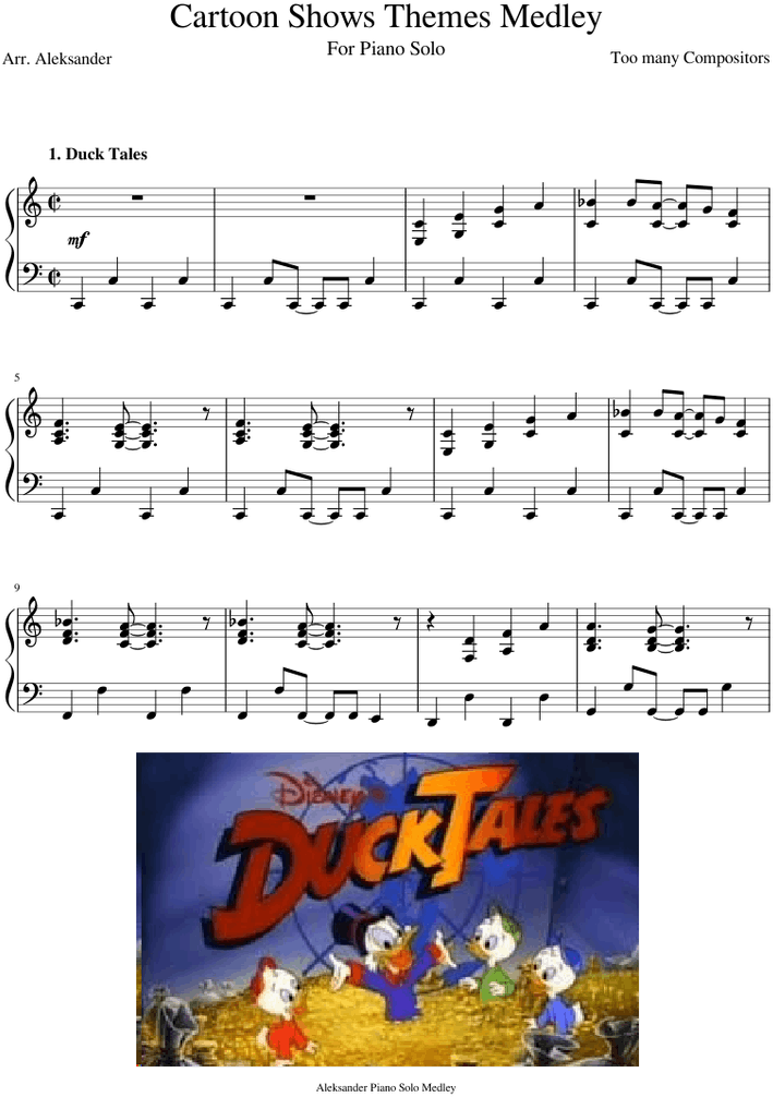 Cartoon Shows Themes Medley Sheet Music For Piano Download - Serotonin Childhood Meme Clipart