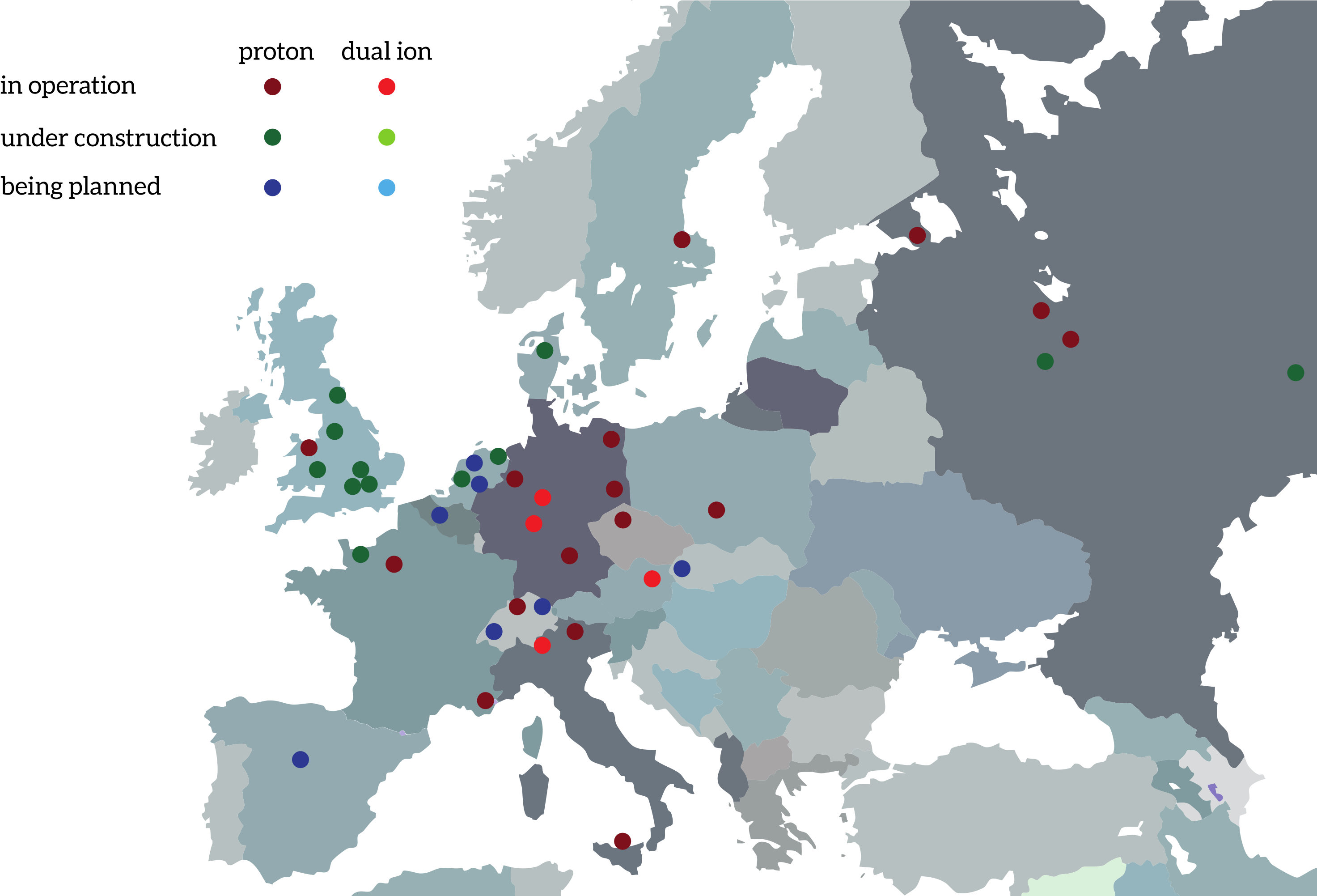 Map Showing Locations Of European Hadron Therapy Facilities - Bible Belts Of Europe Clipart