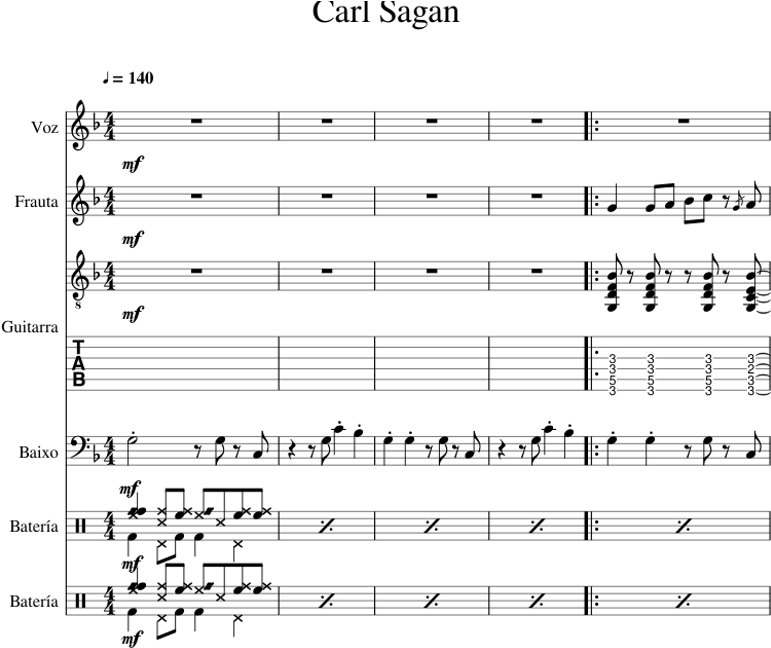 Carl Sagan Sheet Music For Flute, Voice, Guitar, Bass - Sheet Music Clipart