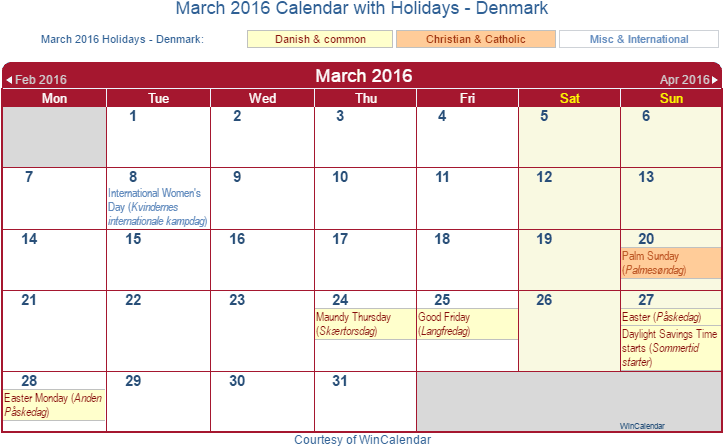 March 2016 Calendar With Dnk Holidays - Miercoles De Ceniza 2019 Clipart