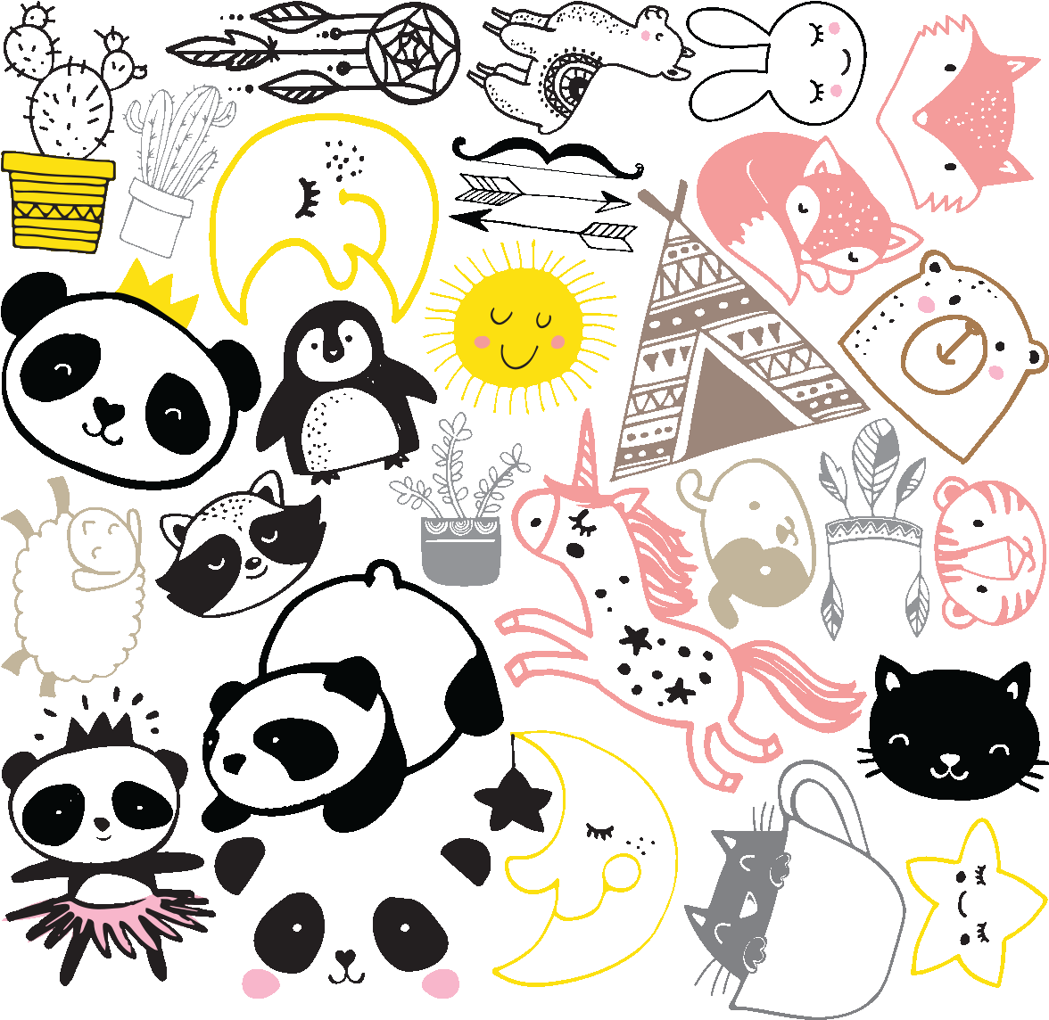Stickers Animaux Scandinaves Les Pandas Et Ses Amis Clipart