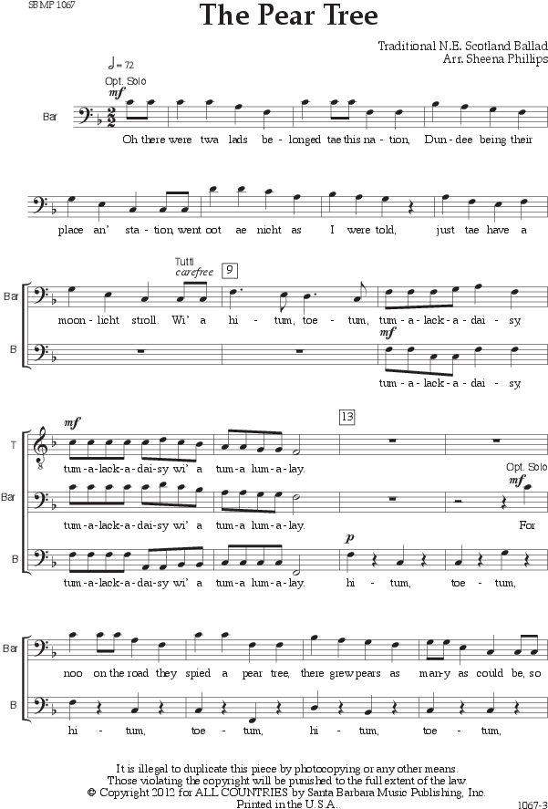 Click To Expand The Pear Tree Thumbnail - Sheet Music Clipart