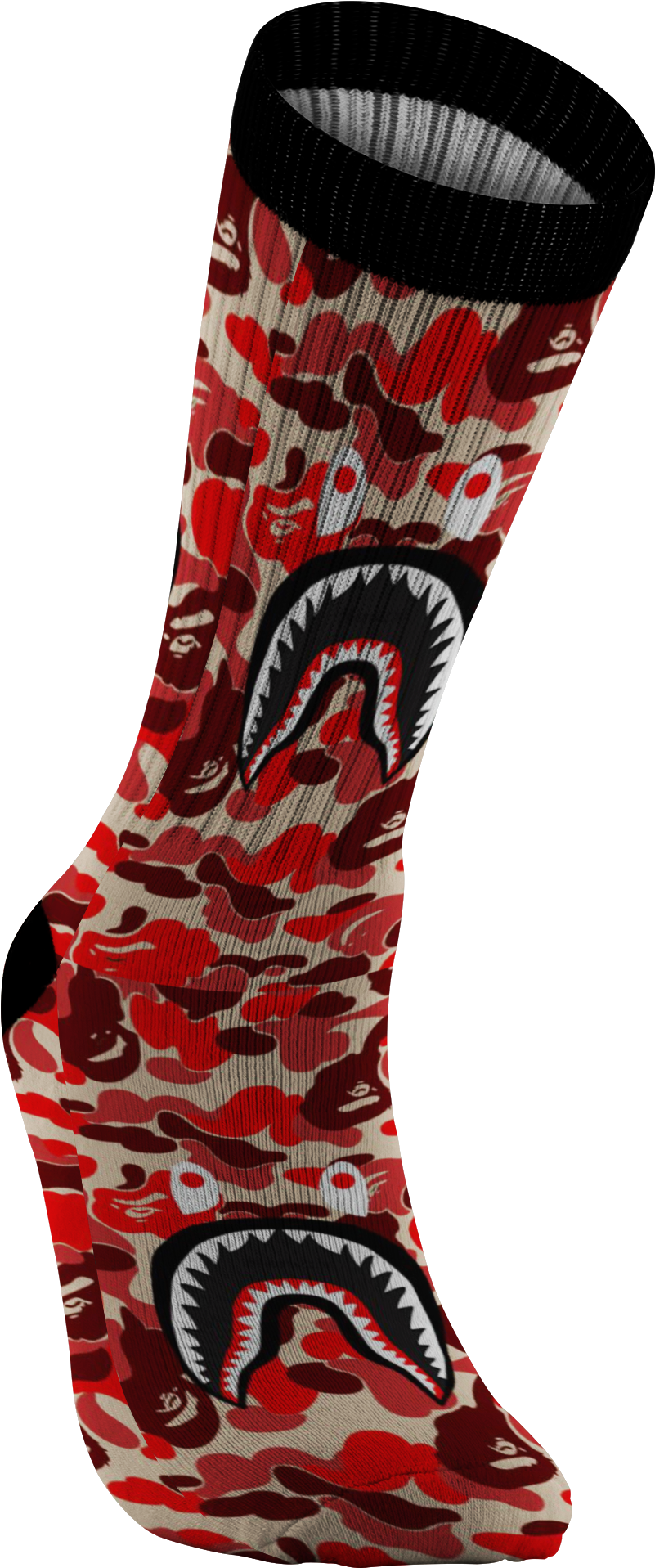 Customized Bape Red Camouflage Shark Design Print Socks, - General Lee Clipart